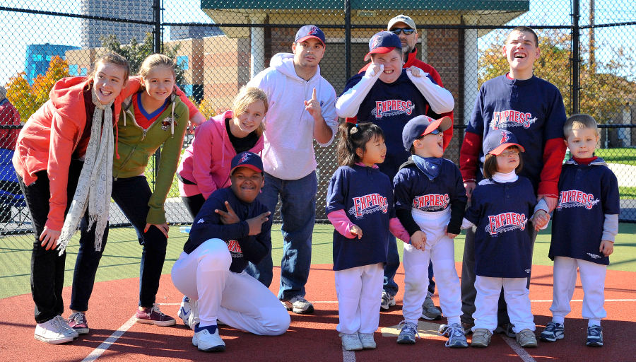 Ben waves while playing first base